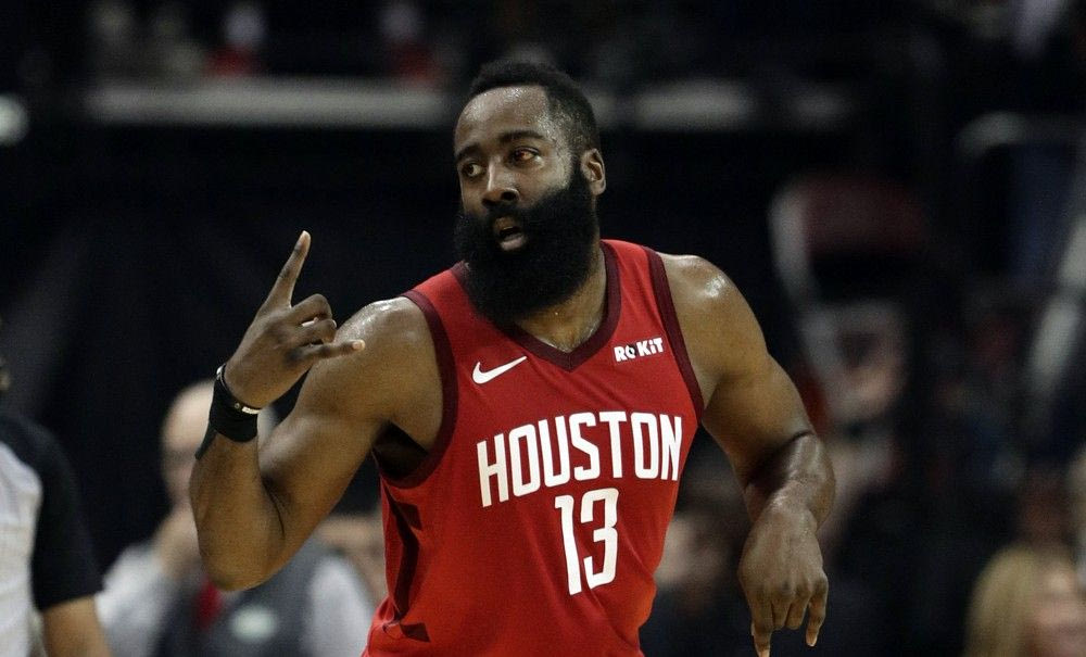 Ο Τζέιμς Χάρντεν πανηγυρίζει ένα από τα πολλά καλάθια του AP