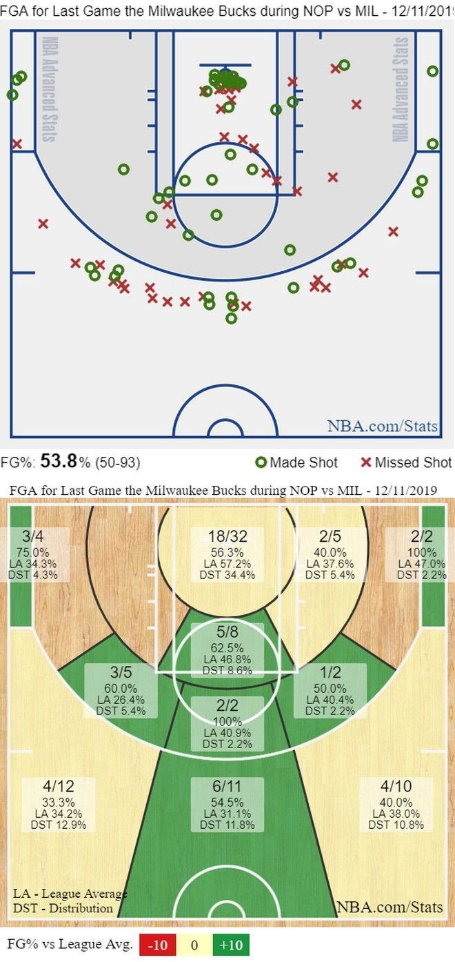 Τα σουτ των Μπακς εναντίον των Πέλικανς, χωρίς τον Αντετοκούνμπο NBA Stats