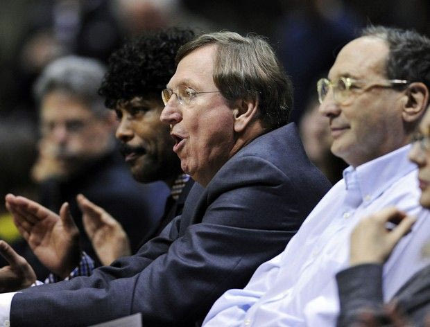Ο πρόεδρος των Νετς, Ροντ Θορν (αριστερά) παρακολουθεί το παιχνίδι με τους Ουίζαρντς, τον Φλεβάρη του 2009 -στο Νιου Τζέρσι- με τον Μπρους Ράτνερ.