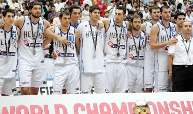 Εθνική Ελλάδας, που πέρυσι βρέθηκε στο δεύτερο σκαλί του κόσμου του μπάσκετ. Το αντιπροσωπευτικό μας συγκρότημα, οι έντεκα από τους δώδεκα διεθνείς που τον περασμένο
