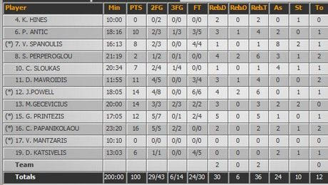 Ο κύριος 100%. Για τον Κώστα Παπανικολάου ο λόγος ο οποίος τελείωσε τον αγώνα με το αψεγάδιαστο 7/7 σουτ (5/5 δίποντα, 2/2 τρίποντα). Εχίχει ακόμη 2 ριμπάουντ και 2 ασίστ.
