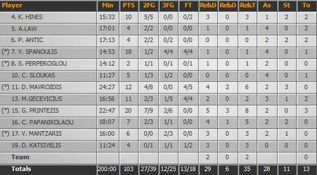 Έκτοτε είχε συμπληρωματικό ρόλο στο παιχνίδι και σε καμία περίπτωση δεν αποτέλεσε αντίπαλο ικανό να προκαλέσει προβληματισμό στους “ερυθρόλευκους”. Το +17 (31-14) της πρώτης περιόδου κατέδειξε ξεκάθαρα τη διαφορά… ταχύτητας μεταξύ των δύο ομάδων. Όσο μάλιστα κυλούσε το παιχνίδι τόσο αυξανόταν η υπέρ του Ολυμπιακού διαφορά.