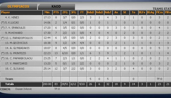 Ολυμπιακός-ΚΑΟΔ 83-61