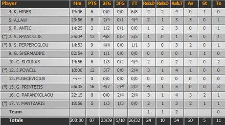 Ο Πάουελ τέλειωσε επιθέσεις, το ίδιο ο Πρίντεζης με το Λο, με αποτέλεσμα η ομάδα του Μπαρτζώκα να ξεφύγει 35-19, 44-28(20′) και 50-32, έχοντας κρατήσει με την αποτελεσματική άμυνά της τον Παππά στο μηδέν.