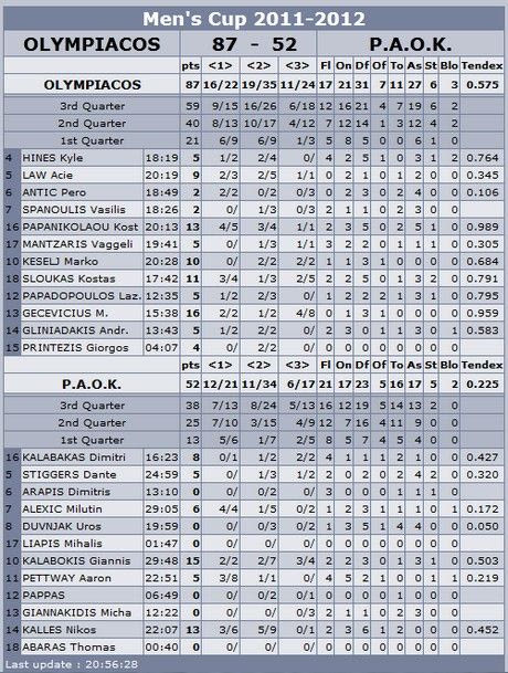 Ολυμπιακός – ΠΑΟΚ 87-52