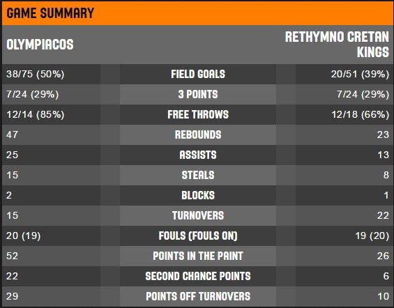 Τέλος ημιχρόνου, Ολυμπιακός – Ρέθυμνο 44-37.