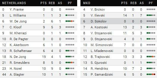 Οι Σκοπιανοί νίκησαν γιατί… μολονότι συνέχισαν το τροπάρι με τα πολλά τρίποντα, είχαν υψηλό ποσοστό από την περιφέρεια (47% στο πρώτο μισό και 40% συνολικά) και “πλήγωσαν” πολλάκις την άμυνα των Ολλανδών. Με τον ίδιο τρόπο επιχείρησαν ν’ απαντήσουν οι “οράνιε”, μείωσαν έως ένα σημείο, αλλά δεν τα κατάφεραν. Το 48-42 έγινε 63-54 και 72-60, με αποτέλεσμα η κατάσταση να ξεκαθαρίσει σχετικά νωρίς.