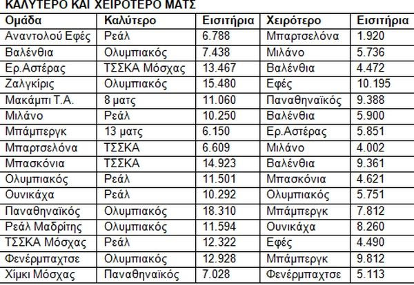 Ιδού και ο πίνακας με τα καλύτερα και τα χειρότερα ρεκόρ προσέλευσης ενός αγώνα στη σεζόν για κάθε ομάδα.