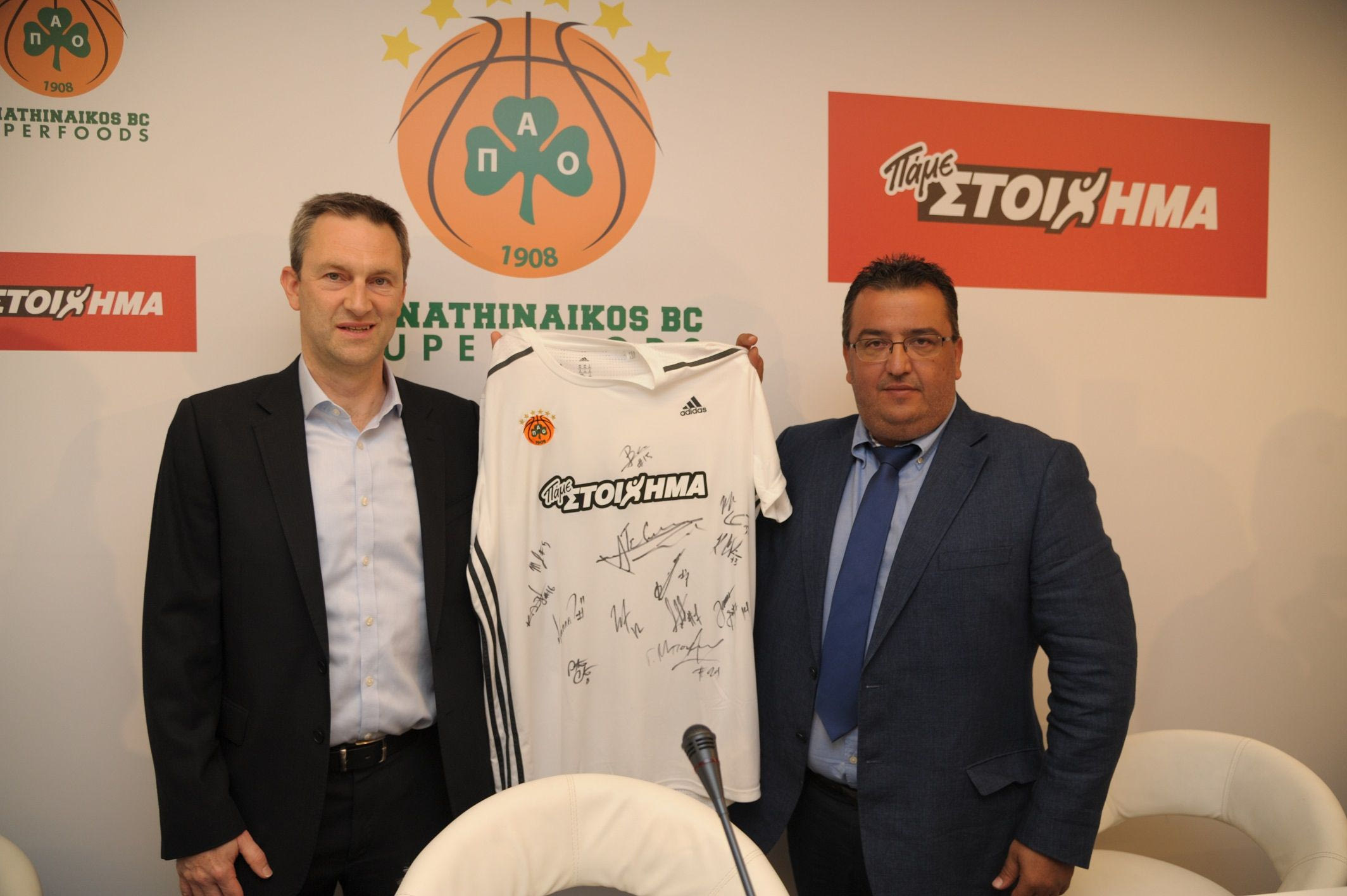 H παρουσίαση έγινε στα νέα ιδιόκτητα γραφεία του ΟΠΑΠ. Ο ΟΠΑΠ, η κορυφαία εταιρεία του κλάδου τυχερών παιγνίων στην Ελλάδα, ενώνει και πάλι τις δυνάμεις του με τον Παναθηναϊκό Superfoods και ως Μέγας Χορηγός θα προβάλλεται στην επίσημη εμφάνιση της ομάδας μέσω του δημοφιλούς παιχνιδιού του, Πάμε Στοίχημα.