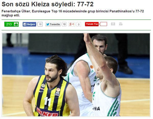 Η τούρκικη “fotomac.tr”, καθώς και η “fanatic.tr” αναφέρουν πως ο Σέρβος νίκησε την παλιά του ομάδα και στέκονται ιδιαίτερα στον πρωταγωνιστή από την πλευρά της Φενέρ, Λίνας Κλέιζα, τονίζοντας πως η ομάδα ξύπνησε από έναν εφιάλτη με τον Λιθουανό να είναι το πρόσωπο της βραδιάς.