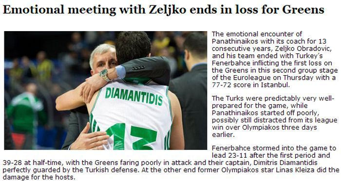 Η αναμέτρηση του Παναθηναϊκού με τη Φενέρμπαχτσε συγκέντρωσε τα βλέμματα των φίλων του μπάσκετ το βράδυ της Πέμπτης (23/1) όχι μόνο για αγωνιστικούς αλλά και για συναισθηματικούς λόγους, αφού ήταν η πρώτη φορά που ο Ζέλικο Ομπράντοβιτς συνάντησε την παλιά του ομάδα ως αντίπαλο, έπειτα από παρουσία 13 χρόνων στον πάγκο του "τριφυλλιού".