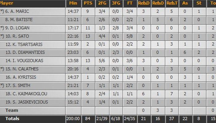 Ο Ιάν Βουγιούκας δεν είχε αντίπαλο στα δικά του μέτρα και σκόραρε άκοπα 13 πόντους σε μόλις 13 λεπτά συμμετοχής. Με 5/6 δίποντα και 3/6 βολές.