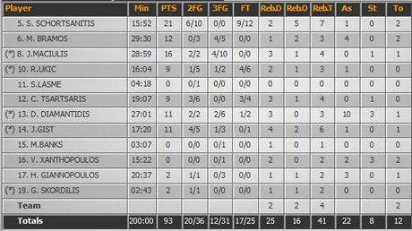 Ο Σχορτσανίτης ήταν ασταμάτητος κόντρα σε μία άμυνα μάλλον μαλθακή, ο Διαμαντίδης δημιουργούσε καταστάσεις για τους συμπαίκτες του ενώ ο Μασιούλις έβαλε και αυτός το δικό του λιθαράκι προς το τέλος του αγώνα με το σκοράρισμά του. Η διαφορά καρφώθηκε από το +10 έως το +17 και ο Παναθηναϊκός πέρασε με λίαν καλώς ένα δύσκολο, από ψυχολογικής πλευράς, τεστ.