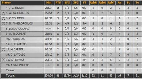 Eνα ακόμη αψεγάδιαστο παιχνίδι από τον Τσόχλα ο οποίος σκόραρε άκοπα 13 πόντους χάνοντας μόνο ένα σουτ. Χωρίς να εκβιάσει προσπάθειες ο Ελληνας γκαρντ πρόσφερε και σκορ και δημιουργία.