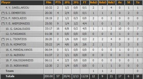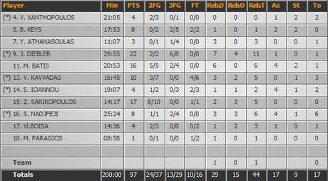 Ο Τζον Ντίμπλερ βρήκε ελεύθερα σουτ και θέρισε. Ο Αμερικανός θυμίζει πολύ τους ξένους τύπου Τούλσον, στα καλά χρόνια της Α1.O Σαρικόπουλος αποτελεί μια από τις περιπτώσεις των σχετικά νέων παικτών που απαιτείται να μην χαθεί. Έπαιξε καλά χωρίς δυνατούς αντιπάλους, να τον δούμε στα πιο δύσκολα.