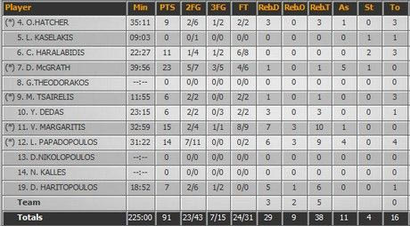 Τα δεκάλεπτα: 16-15, 38-33, 56-51, 76-76, 91-85