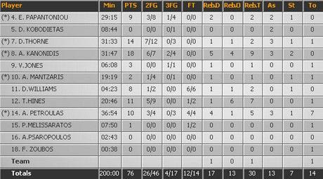 Ο Ντουάιτ Θορν πέτυχε το καλάθι της νίκης, ο Ανδρέας Κανονίδης όμως είχε σταθερά καλή απόδοση και θύμισε τον παίκτη που μας έκανε εντύπωση πέρυσι στο Μαρούσι. Με 8/11 σουτ, 9 ριμπάουντ και 3 ασίστ ήταν ηγετική μορφή για το Περιστέρι.