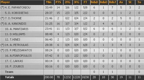 Ο Νώντας Παπαντωνίου οργάνωσε, σκόραρε, έπαιξε άμυνα, απέφυγε τα λάθη. Ιδανικός ως κόμπο γκαρντ, τέλειωσε το παιχνίδι με 14 πόντους, 7 ριμπάουντ, 5 ασίστ και 3 κλεψίματα. Παίκτης για όλες τις δουλειές.