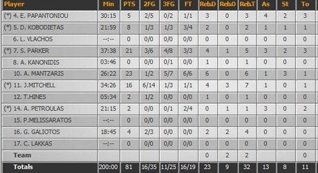 Η ψυχή του Περιστερίου, ο Αντώνης Μάντζαρης, κατέθεσε τα…αυγά του στο παρκέ. Ιδού τα κατορθώματα του Ελληνα άσου. Σκόραρε 23 πόντους σε 26 λεπτά συμμετοχής, πήρε 6 ριμπάουντ, έκλεψε 3 φορές και έπαιξε τις πιο αποτελεσματικές του άμυνες στα τελευταία κρίσιμα λεπτά.