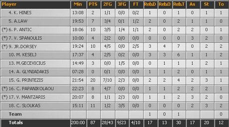 Του αρέσουν του Γιώργου Πρίντεζη παιχνίδια στο ανοικτό γήπεδο με πολλούς αιφνιδιασμούς. Τέλειωσε το ματς ο διεθνής φόργουορντ με 20 πόντους και 7/10 δίποντα.