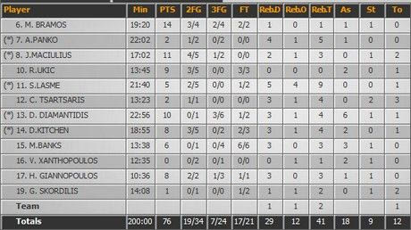 Τα γερά θεμέλια για την άνετη νίκη τα έβαλε ο Μάικλ Μπράμος με την εξαιρετική παρουσία του στην επίθεση κατά τη διάρκεια του πρώτου ημιχρόνου όταν και σκόραρε 14 πόντους.