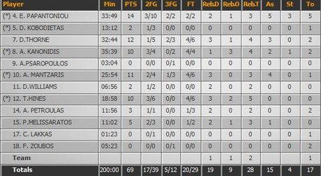 Το Περιστέρι, αν και μας έχει συνηθίσει να μάχεται μέχρις εσχάτων, ουδέποτε αντέδρασε. Σαφώς επηρεασμένοι οι παίκτες του από το γεγονός ότι ο αντίπαλός του ήταν ασυναγώνιστος, παρέδωσαν γρήγορα το πνεύμα και ο Πανιώνιος έφτασε άνετα στην επιτυχία φτάνοντας τη διαφορά ακόμα και στους 31 πόντους (43-74).