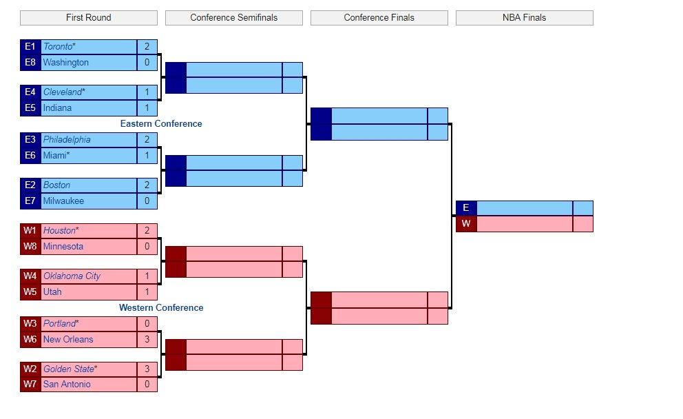 Λίγο παραπάνω ανταγωνισμό περιμέναμε στην Δύση, όμως τα αποτελέσματα μέχρι στιγμής δείχνουν πως τα μεγάλα φαβορί θα κάνουν… περίπατο και, λογικά, θα δούμε πρόωρο τελικό ανάμεσα σε Γουόριορς και Χιούστον.