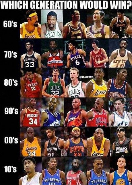 Κάθε εποχή είναι διαφορετική από την προηγούμενη ή την επόμενη, πόσο μάλλον όταν από το 1960 μέχρι το 2015 έχουν μεσολαβήσει 55 χρόνια! Κάθε 10ετία είχε -και έχει- τα δικά της ξεχωριστά σημεία αναφοράς. Τουλάχιστον όλες έχουν ένα στοιχείο που τις ενώνει: το μπάσκετ. Το ΝΒΑ κατάφερε να εδραιωθεί σαν άλλος βασιλιάς στον πορτοκαλί κόσμο και να καυχιέται για το γεγονός πως οι περισσότεροι θρύλοι του σπορ πάτησαν το παρκέ του “Μπόστον Γκάρντεν” ή του “Μάντισον Σκουέαρ Γκάρντεν”.