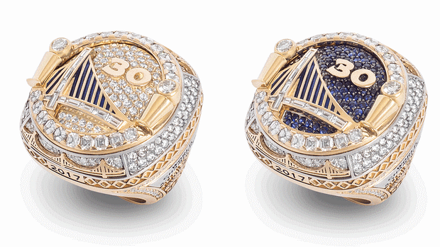 Για τρίτη φορά -όσα και τα πρωταθλήματα τους, την τελευταία τετραετία- εμπιστεύτηκαν τη δημιουργία των μοναδικών αυτών κοσμημάτων που προσφέρονται σε όλα τα μέλη της ομάδας (παίκτες, προπονητές) και τους ιδιοκτήτες, Joe Lacob και Peter Guber στην εταιρεία Jason of Beverly Hills.