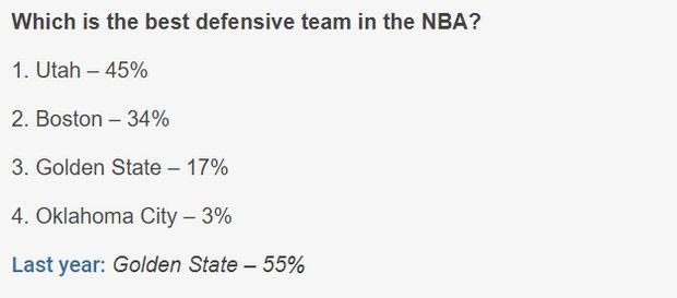 ⬆ ανήκει στην ομάδα με την πιο αποδοτική άμυνα του πρωταθλήματος. Ο Μάικ Μπουντενχόλτζερ δεν έχει μεταμορφώσει τους Μπακς απελευθερώνοντας το επιθετικό ταλέντο τους και αυξάνοντας τα συνολικά ποσοστά τους στο τρίποντο. Δούλεψε και βελτίωσε τρομερά την αμυντική συμπεριφορά τους. Τα ‘ελάφια’ δέχονται 105.4 πόντους ανά αγώνα, αλλά σε πιο γρήγορο ρυθμό και πολλές περισσότερες κατοχές απ’ όσες φερ’ ειπείν οι πρωτοπόροι Πέισερς (των 103.9 πόντους). Γι’ αυτό και είναι απαραίτητη η μετατροπή των αριθμών στις 100 κατοχές. Σ’ αυτήν την κατηγορία είναι ανώτεροι από τους Τζαζ, μια και δέχονται μετά βίας 105.04 πόντους, από τους σχεδόν 111 πόντους της περυσινής περιόδου!. Είναι η καλύτερη επίδοση που θα βρεις εφέτος.