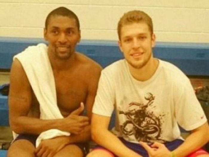 Ο 20χρονος φόργουορντ είχε την ευκαιρία να συναντήσει από κοντά και να προπονηθεί μαζί με τον Metta World Peace, κατά κόσμον, Ρον Αρτέστ και φυσικά να φωτογραφηθεί και μαζί του.