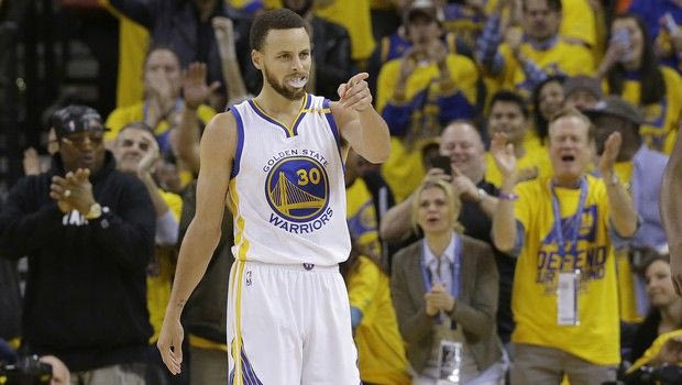 Golden State Warriors guard Stephen Curry (30) celebrates during the second half of Game 1 of a first-round NBA basketball playoff series against the Portland Trail Blazers in Oakland, Calif., Sunday, April 16, 2017. The Warriors won 121-109. (AP Photo/Jeff Chiu) AP