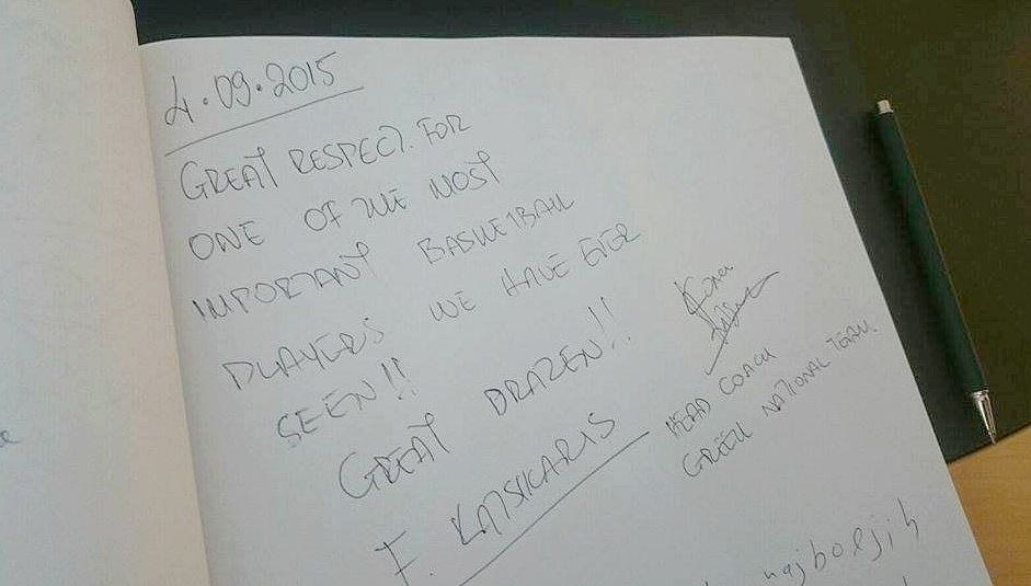 Θαρρείς ότι το πνεύμα του Μότσαρτ του ευρωπαϊκού μπάσκετ πλανιέται ανάμεσα στους τοίχους και τις προθήκες, ανάμεσα στα τρόπαια και στα μετάλλια που κατέκτησε ο αείμνηστος Ντράζεν στην τεράστια καριέρα του.