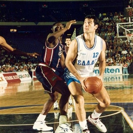 ” Θα σας διηγηθώ μια ιστορία: όταν φτάσαμε με τον Ευθύμη Κιουμορτζόγλου ακόμα προπονητή στο Τζορτζντάουν και είχαμε συμφωνήσει να παίξουμε με το κολέγιο φιλικό έγινε λάθος συνεννόηση με την ημερομηνία. Οι Αμερικανοί νόμιζαν όταν παίζουμε μια ημέρα αργότερα. Μπήκαμε στο γήπεδο, στο οποίο υπήρχε και ένα πολύ μεγάλο πανό για τον Πάτρικ Γιούιν και ήμασταν χαρούμενοι που θα τον αντιμετωπίζαμε. Πηγαίνουμε εκεί εν τέλει με πολλά νεύρα, περισσότερα το προπονητικό τιμ γιατί θα άλλαζε ο προγραμματισμός και θα χάναμε την ημέρα. Μας είδαν όμως κάποιοι φύλακες του γηπέδου και επειδή βλέπουν ότι αγχωνόμαστε έρχεται ένας από αυτούς, γύρω στα 45, και λέει ‘κόουτς τι πρόβλημα υπάρχει; Να μαζέψω τρεις – τέσσερις φίλους απ΄έξω και να έρθουμε παίξουμε;’.