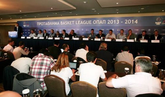 Οι 14 προπονητές της Basket League παρέθεσαν συνέντευξη Τύπου ενόψει της έναρξης της νέας αγωνιστικής περιόδου, με τους Γιώργο Μπαρτζώκα και Αργύρη Πεδουλάκη να δηλώνουν πως δεν ήθελαν το ντέρμπι με το... καλημέρα και τον προπονητή των Πειραιωτών να χρίζει το "τριφύλλι" ως φαβορί για την πρώτη μάχη.
