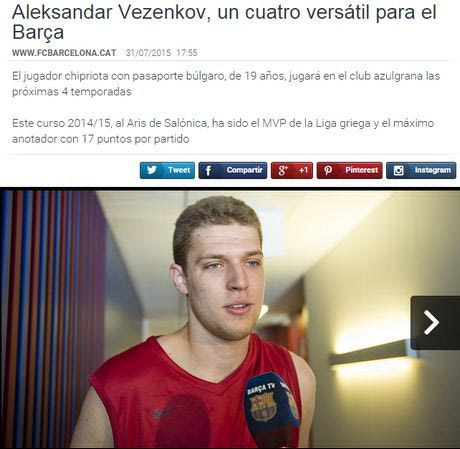 Παίκτης της Μπαρτσελόνα είναι και επίσημα ο Αλεξάντερ Βεζένκοφ. Οι “μπλαουγκράνα” ανακοίνωσαν την Παρασκευή την απόκτησή του. Αξίζει να σημειωθεί πως ο Βεζένκοφ είχε αποσύρει τη συμμετοχή του στα ντραφτ της 25ης Ιουνίου, αφήνοντας στην άκρη -τουλάχιστον προς το παρόν- το όνειρο του ΝΒΑ και είχε αποφασίσει να παραμείνει στην Ευρώπη.