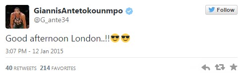 Στο Λονδίνο μαζί με την αποστολή των Μπακς, βρίσκεται ο Γιάννης Αντετοκούνμπο, για τον αγώνα κόντρα στους Νικς την Πέμπτη (15/1).