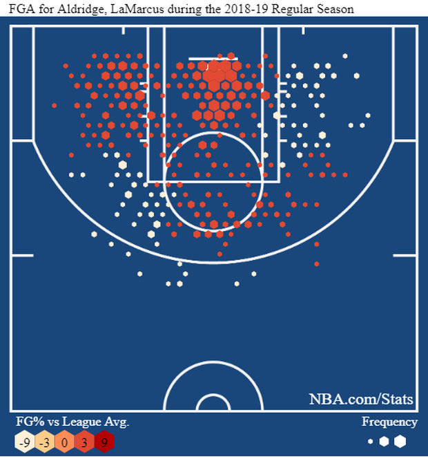 > Ο ΛαΜάρκους Άλντριτζ είναι ο τύπος που φημίζεται για την ικανότητα του στα σουτ που μετρούν για δυο πόντους . Δες λίγο τον ανανεωμένο χάρτη με το πώς σκοράρει από την αρχή της σεζόν.