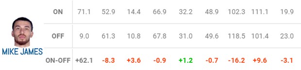 Ο Αμερικάνος γκαρντ πήγε στη Μιλάνο ως ο πιο καλοπληρωμένος παίκτης του ρόστερ και αλήθεια είναι πως της χάρισε χαρακτήρα. Είναι ο δεύτερος σκόρερ της διοργάνωσης (πίσω από τον Σβεντ των μισών αγώνων) και ο δεύτερος καλύτερος πασέρ (κυνηγώντας τον Νικ Καλάθη). Ταυτόχρονα όμως ο Τζέιμς είναι ο παίκτης που αναγκαστικά έχει ‘εγκλωβίσει’ τη Μιλάνο σ’ ένα στιλ παιχνιδιού χωρίς διαφυγή. Δεν είναι τυχαίο πως στα λιγότερα από 4 λεπτά που λείπει από το παρκέ, παίζοντας ως τώρα 35’20” ανά αγώνα – ο παίκτης με τον περισσότερο χρόνο συμμετοχής, η ομάδα του Σιμόνε Πιανιτζιάνι ‘παράγει’ περισσότερα απ’ όσα ο ίδιος όταν βρίσκεται εντός, σε αντιστοιχία κατοχών πάντα. Ευχή και κατά, με τρεις λέξεις…