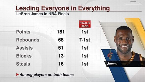 Ο Λεμπρόν Τζέιμς κάνει απίθανα πράγματα στους τελικούς του NBA και οδηγεί τους Καβαλίερς μέχρι τέλους με ορισμένες ιστορικές επιδόσεις.