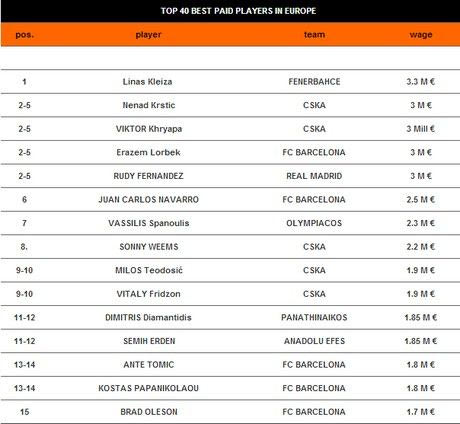 Παρά το γεγονός ότι οι ομάδες δεν δημοσιοποιούν επ’ ακριβώς τους οικονομικούς όρους των συμβολαίων των παικτών τους, όπως επί παραδείγματι συμβαίνει στο ΝΒΑ, το εν λόγω άρθρο είναι αρκετά κατατοπιστικό για τα χρήματα που ξοδεύονται στο ευρωπαϊκό μπάσκετ.