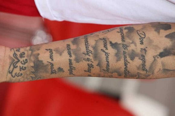 Το πρώτο του τατουάζ κλείνει πλέον… δεκαετία στο χέρι του. Και φυσικά αφορούσε την απώλεια του πατέρα του, ο οποίος έφυγε από τη ζωή το 1997. Ο αρχηγός του Θρύλου έκτοτε έχει κάνει ακόμη δύο τατουάζ και όλα αφορούν την οικογένεια του. Τη σύζυγο του και τα τέσσερα παιδιά του.
