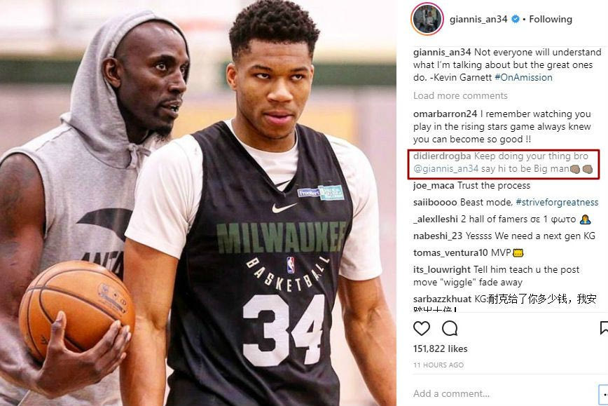 O Γιάννης Αντετοκούνμπο είναι ένα από τα πιο "καυτά" ονόματα στο χώρο του NBA και όπως είναι λογικό το instagram του παρακολουθείται κι από άλλους σούπερ σταρ του αθλητισμού. Ένας απ' αυτούς και ο Ντιντιέρ Ντρογκμπά.