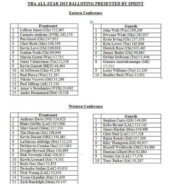 Ο Έλληνας φόργουορντ έχει συγκεντρώσει 17,512 ψήφους. Στην κορυφή των πρώτων αποτελεσμάτων της ψηφοφορίας είναι ο ΛεΜπρον Τζέιμς των Καβαλίερς με 552.967 ψήφους κι ακολουθούν οι Στέφ Κάρι (549,095) των Γουόριορς και Άντονι Ντέιβις (524.623) των Πέλικανς.