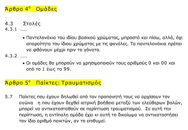 Από την ιστοσελίδα της ΟΔΚΕ αλιεύσαμε τις εξής τροποποιήσεις στους κανονισμούς αγώνων: