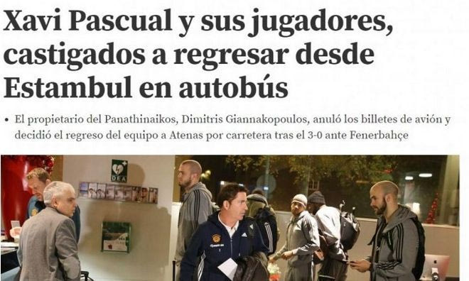 Από τη δική της μεριά η ισπανική “As” αναφέρει: “Ο πολλές φορές οξύθυμος Δημήτρης Γιαννακόπουλος τιμώρησε την ομάδα σε ό,τι αφορά το ταξίδι επιστροφής, κάνοντάς το με λεωφορείο και όχι με αεροπλάνο! Πριν από τα ματς είχε τάξει πριμ 250.000 ευρώ. Η ήττα άφησε τους παίκτες χωρίς πριμ αλλά με ένα ταξίδι 12 ωρών με λεωφορείο”.