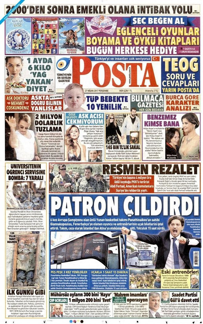 Η τουρκική εφημερίδα POSTA έχει στο πρωτοσέλιδο της τα γεγονότα στον Παναθηναϊκό, με τον τίτλο που συνοδεύει το ρεπορτάζ να αναφέρει χαρακτηριστικά, “το αφεντικό τρελάθηκε”.
