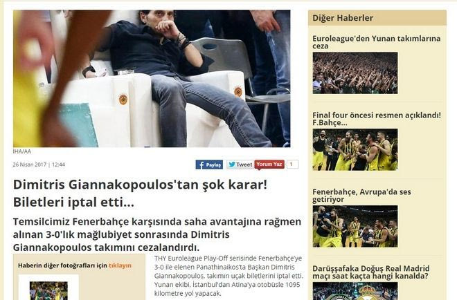 Για “απόφαση σοκ κάνει λόγο η “Milliyet” στην ιστοσελίδα της, ενώ η “Hurriyet” αντιστοίχως, γράφει πως “ο πρόεδρος του Παναθηναϊκού τρελάθηκε”.