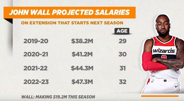 Αυτά είναι τα λεφτά θα πάρει ο Wall, ο οποίος μαζί με τους Bradley Beal και Otto Porter Jr. έχουν maximum συμβόλαια. Σημείωση: οι συγκεκριμένοι παίκτες είναι έξι χρόνια μαζί -χωρίς να τους φαίνεται.