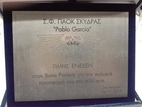 Στη Σκύδρα βρέθηκε το Σάββατο ο Μπάνε Πρέλεβιτς προκειμένου να τιμηθεί από τον τοπικό Σύνδεσμο Φίλων ΠΑΟΚ "Pablo Garcia" για την προσφορά του στο σύλλογο.